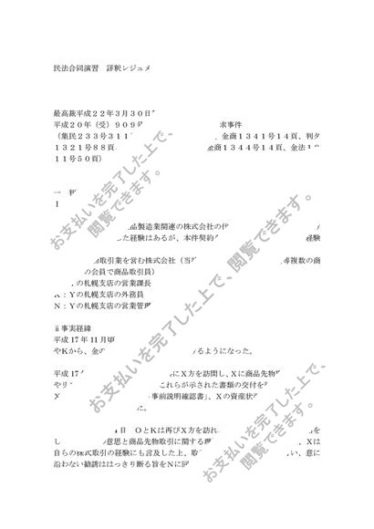 最判平22年3月30n日判決(金の先物取引)評釈レジュメ