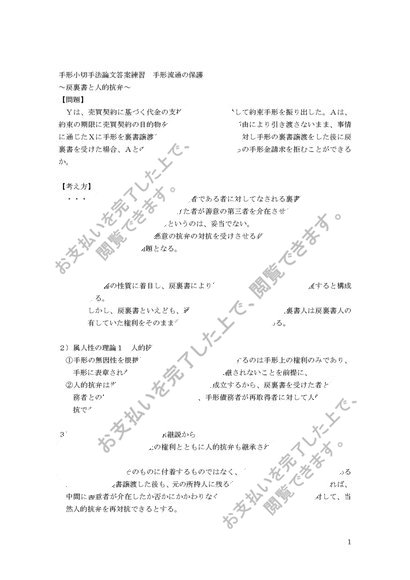 手形小切手法論文答案練習 手形流通の保護 戻裏書