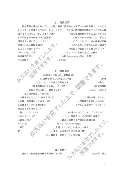 社会的ヒューリスティック(心理学実験レポート)