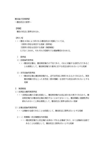 憲法論文答案練習 憲法改正の限界