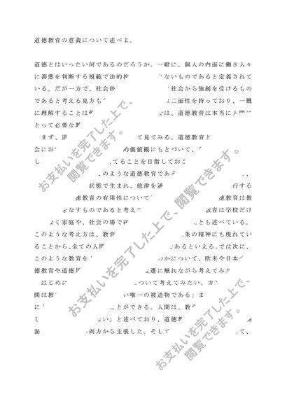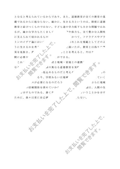 佛教大学 道徳教育の研究 【2011年度 A評価リポート】設題:道徳教育の意義について述べよ。