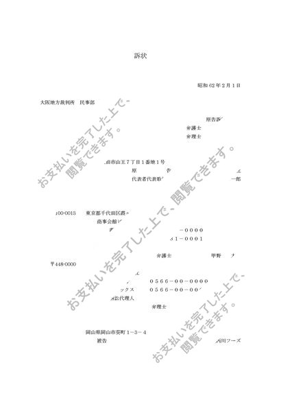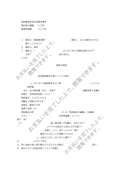 特許権侵害訴訟 損害賠償請求・差止請求 訴状起案レポート