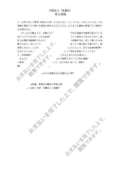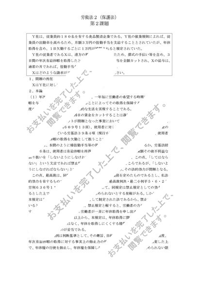 2011 中大通教 労働法2(保護法)第2課題 年休取得と皆勤手当控除