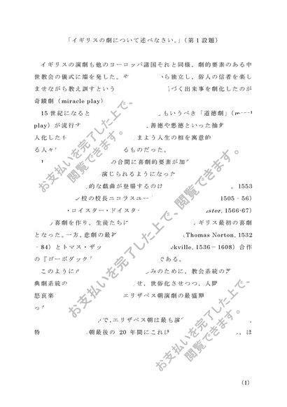 P6101 英米文学概論 第1・2設題(第1設題B評価・第2設題A評価)