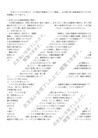日本とアメリカの老人ホームの特色や相違点、わが国の老人福祉施設の今日的課題