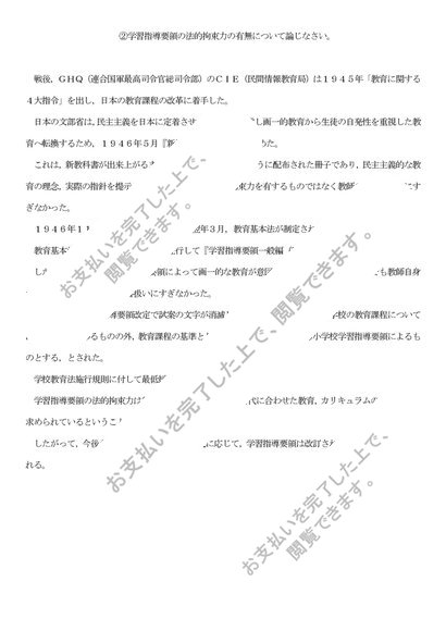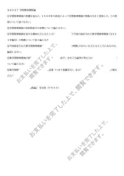 S0527 学校教育課程論 科目最終試験6設題セット
