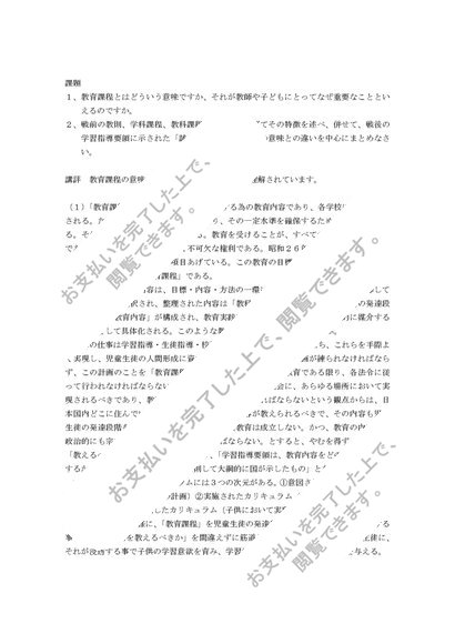 教育課程論 1単位目 明星大学 2011年度 合格レポート
