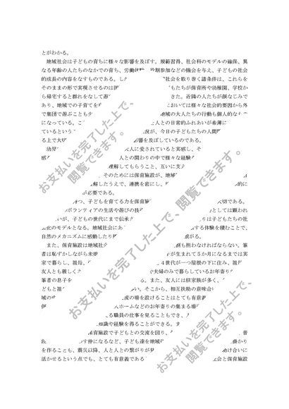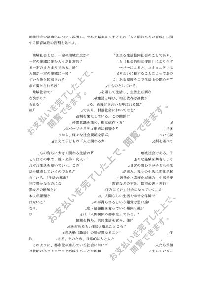 地域社会の都市化について説明し、それを踏まえて子どもの「人と関わる力の育成」に関する保育施設の役割を述べよ。(保育内容(人間関係))A判定