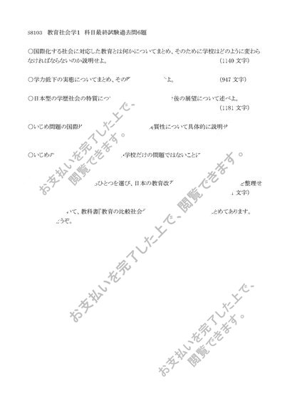 【S8103】【Z1104】教育社会学1科目最終試験6題セット