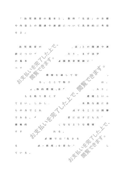 「幼児保育の基本と、教科「生活」の目標や内容との関連や連続について具体的に考察せよ」