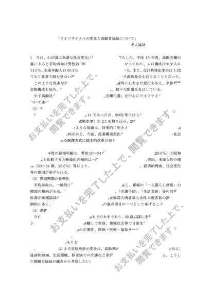 「ライフサイクルの変化と高齢者福祉について」
