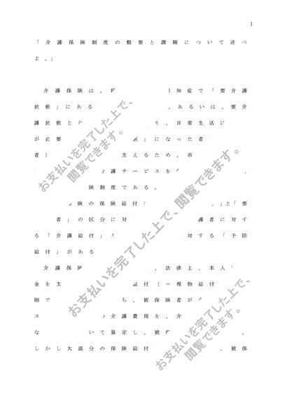 社会保障論Ⅱ 「介護保険制度の概要と課題について述べよ。」 課題レポートA判定