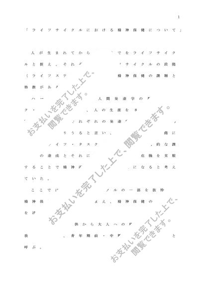 精神保健学① 「ライフサイクルにおける精神保健について」 課題レポートA判定