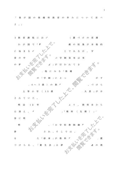 保健科指導法1② 「我が国の保健科教育の歩みについて述べよ。」 課題レポートA判定