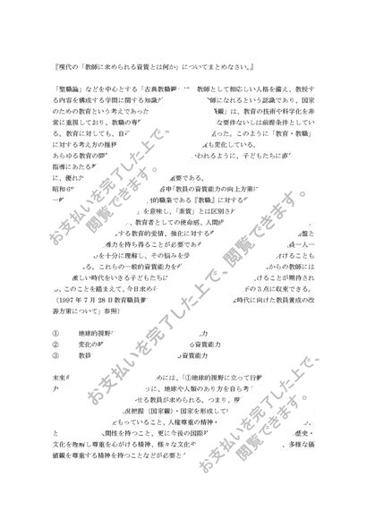 『現代の「教師に求められる資質とは何か」についてまとめなさい。』