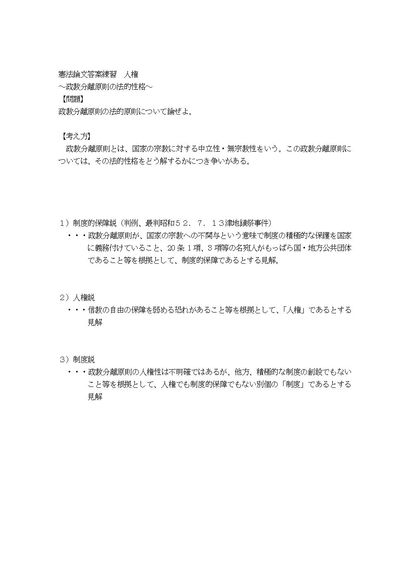 憲法論文答案練習人権政教分離