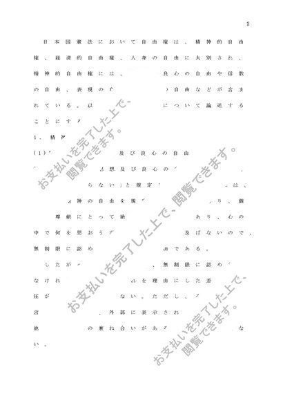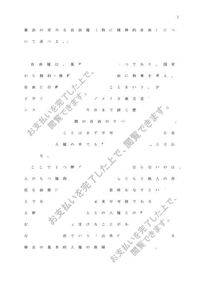 法学Ⅰ憲法の定める自由権(特に精神的自由)について述べよ。」 課題レポートA判定