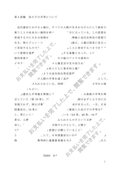 佛大通信「日本国憲法」第1設題 A評価レポート