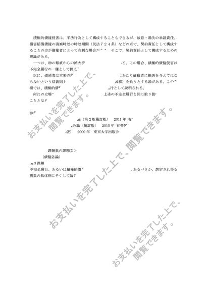 中央大学 通信教育 2012年度 民法4 第3課題 合格レポート