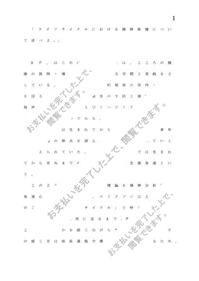 精神保健学 「ライフサイクルにおける精神保健について述べよ。」