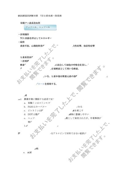 VE-2獣医師国家試験 殺虫剤 除草剤