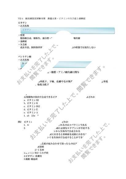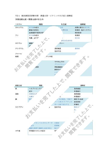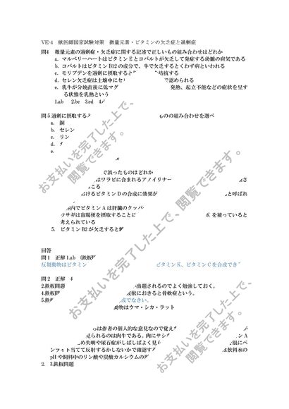 VE-4獣医師国家試験対策 多量元素・微量元素・ビタミンの欠乏症と過剰症