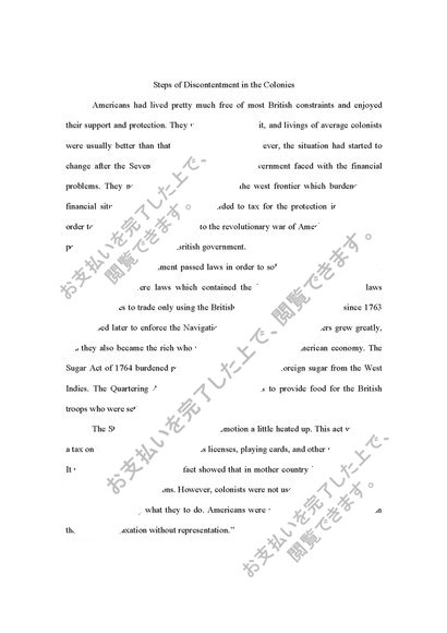 Steps of Discontentment in the Colonies