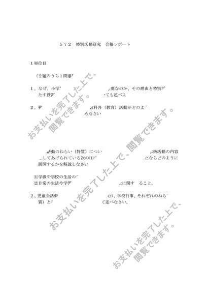 572 特別活動研究 1単位目&2単位目 配本年度2009年度~ 合格レポート 明星大学通信