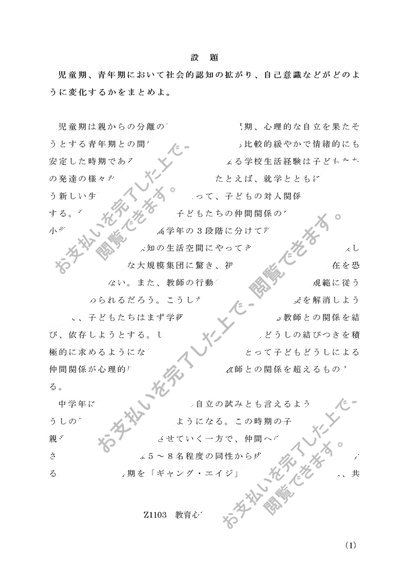 Z1103 教育心理学1 第1設題 佛教大学