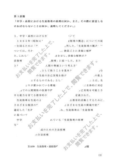 Z1109 生徒指導・進路指導の研究(中・高) 第1設題 佛教大学