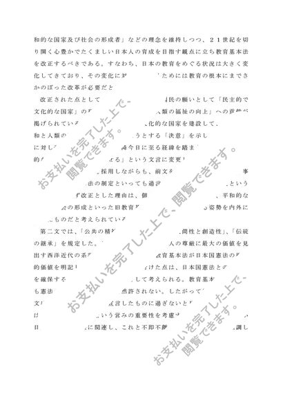 佛教大学 教育行政学 第一設題 教育基本法の「改正」について