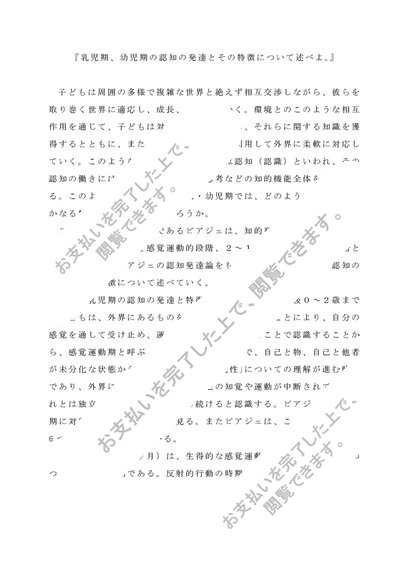 佛教大学 児童心理学 第一設題 乳児期、幼児期の認知の発達とその特徴
