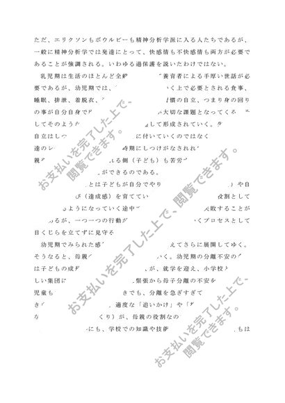 佛教大学 児童心理学 第二設題 子どもの発達と母親の役割