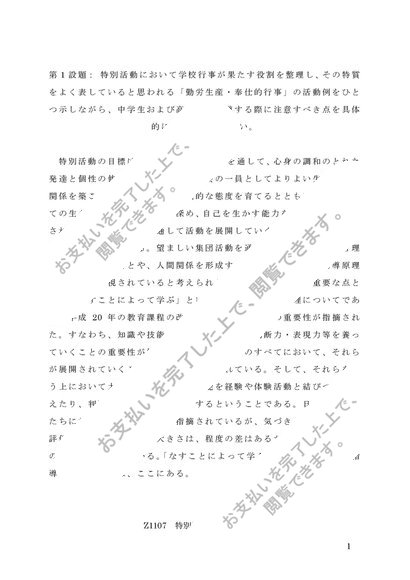 Z1107特別活動研究(A判定レポート)