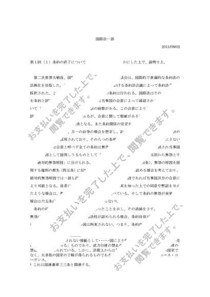 国際法一部 第1回「(1)条約の終了について、無効との相違・・・」 評価A 2011