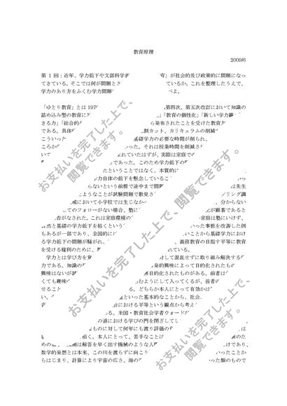 教育原理 第1回 「近年、学力低下や文部科学省の「ゆとり教育」が・・・」 評価B 2009