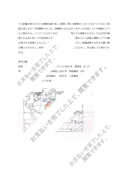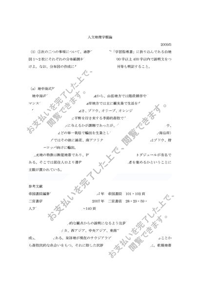 人文地理学概論 第2回 「白地図(地中海・イスラム)生活様式について」 評価B 2009