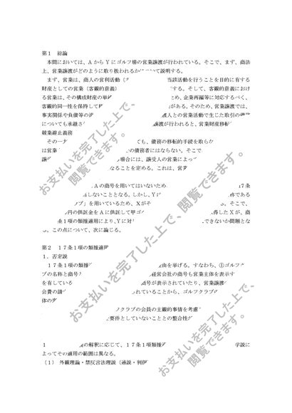中央大学 通信教育 2012年度 商法(総論総則) 第2課題 合格レポート