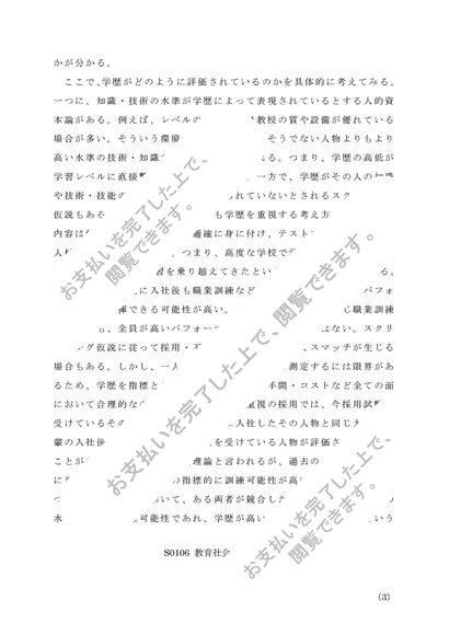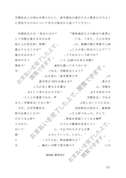 佛教大学 S0106「教育社会学」第1設題 A判定リポート
