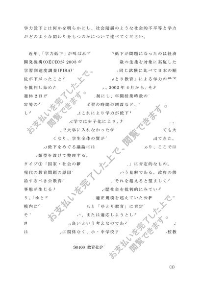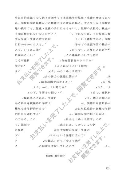 佛教大学 S0106「教育社会学」第2設題 A判定リポート