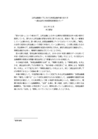 【要旨】公的金融縮小下における地域金融市場の在り方~第2地方銀行・信用金庫のパネルデータによる実証分析~