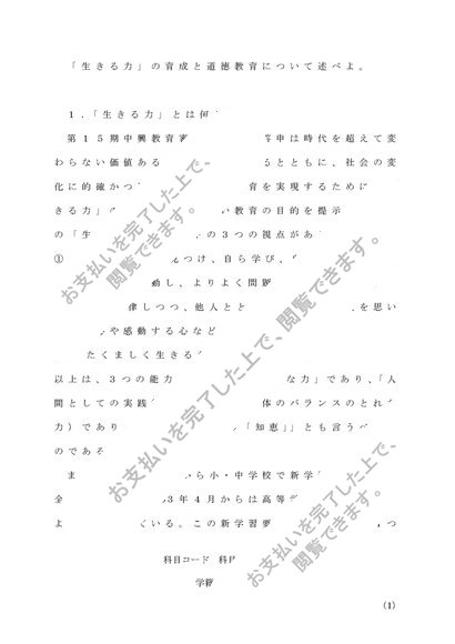 S0528 道徳教育の研究 レポート 佛教大学