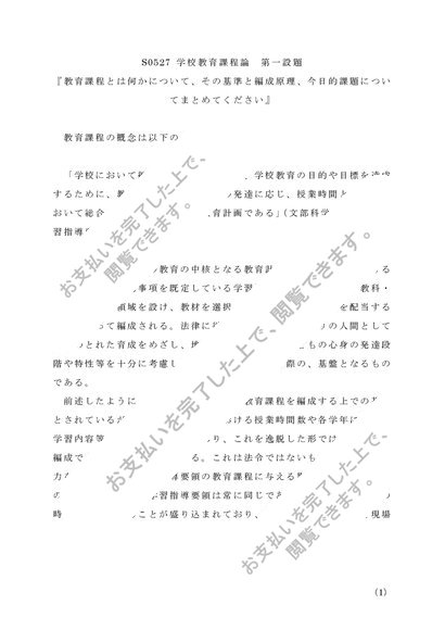 学校教育課程論 第一設題