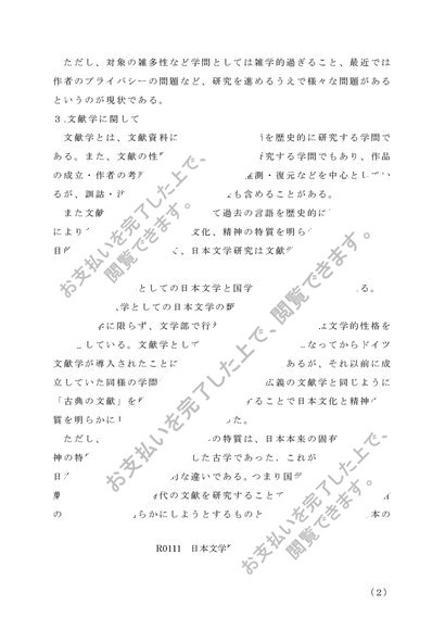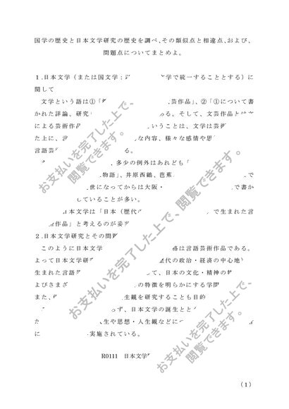 佛教大学 通信 日本文学概論 第1設題
