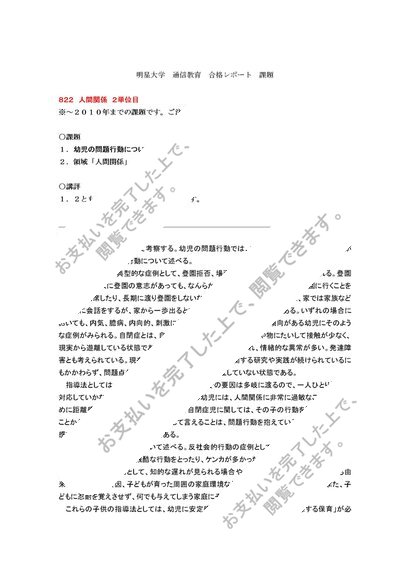 822 人間関係 2単位目 合格レポート 幼稚園教諭2種 明星大学 通信教育