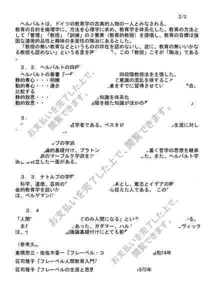教育史:大阪芸短リポート、評価【B良】教育史上の業績①フレーベル②ヘルバルト③ナトルプについて記せ。NJ06~NJ14対応