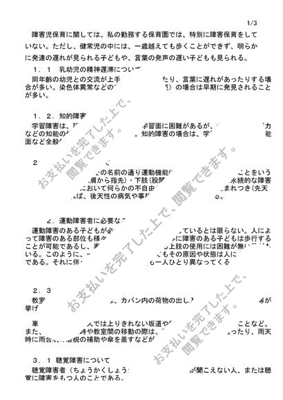 障害児保育:大阪芸短リポート、評価【A優】精神遅滞、運動障害、聴覚・視覚障害、てんかんの各障害について説明し、それらの障害のある子どもへの対応や留意点について述べなさい。NJ13~NJ18対応