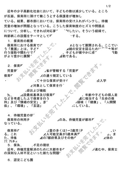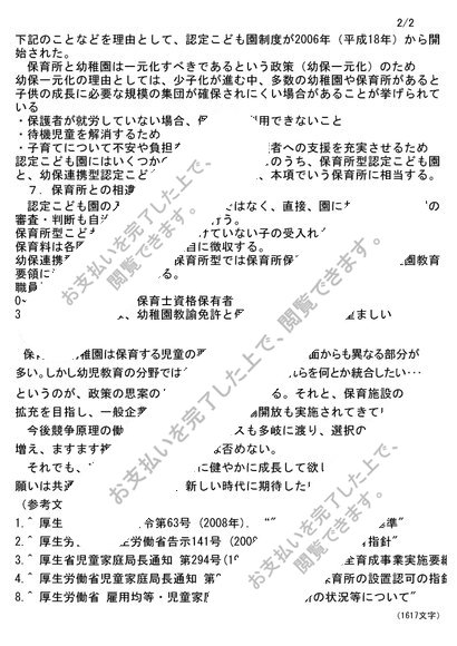 保育原理:大阪芸短リポート評価、評価【B良】わが国の保育制度の現状と課題について述べなさい。NJ06~NJ14対応