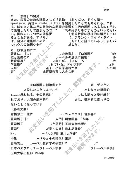 保育原理:大阪芸短リポート評価、評価【A優】フレーベルの「幼稚園」創設の理念について述べなさい。