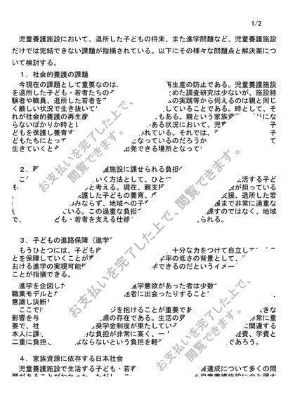 社会的養護:大阪芸短リポート評価、評価【A優】児童養護に関して、近年家庭と社会との相互協調、相互補完の関係性の確立が強調されている。その背景と目指されるべき連携のあり方について考察を加えなさい。NJ13~NJ14対応
